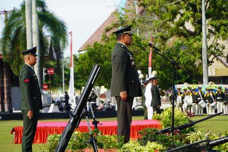 Peringatan Hari Ulang Tahun (HUT) ke-80 TNI tahun 2025 dipusatkan di Lapangan Balai Raya Semarak Bengkulu, Minggu (5/10). Upacara berlangsung khidmat dengan Kasrem 041/Garuda Emas Kolonel Inf. Edison S. Sinabutar bertindak sebagai Inspektur Upacara.