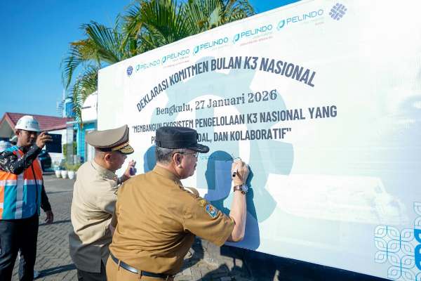 ReportTimeNews, Bengkulu – Peringatan Bulan Keselamatan dan Kesehatan Kerja (K3) Nasional Tahun 2026 di Provinsi Bengkulu digelar melalui upacara di halaman Kantor Pelindo Bengkulu, Selasa (27/1). Penjabat (Pj) Sekretaris Daerah Provinsi Bengkulu, Herwan Antoni, bertindak sebagai inspektur upacara.