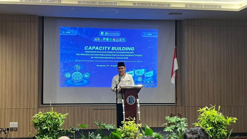 ReportTimeNews, Bengkulu – Sekretaris Daerah Provinsi Bengkulu, Herwan Antoni, membuka sekaligus meresmikan kegiatan Capacity Building pengisian evaluasi kinerja (Championship) Tim Percepatan dan Perluasan Digitalisasi Daerah (TP2DD) se-Provinsi Bengkulu Tahun 2026 di Hotel Mercure Bengkulu, Senin (13/4).